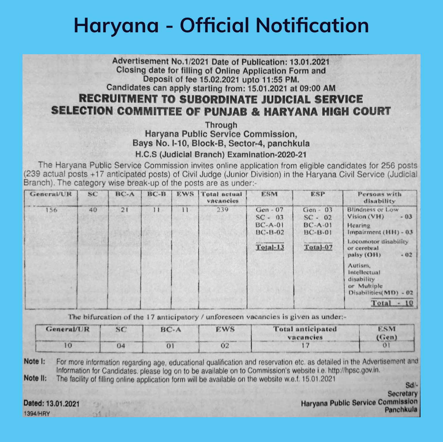 Haryana - Official Notification- 239 Vacancies